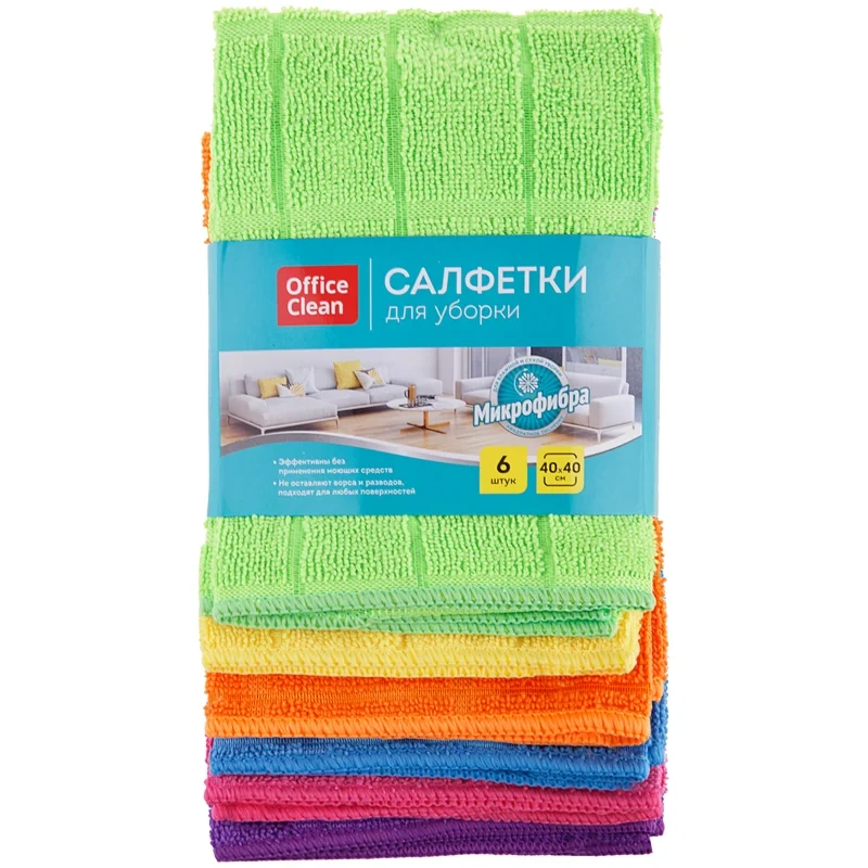 Салфетки для уборки OfficeClean 'Универсальные', набор 6 шт., микрофибра, 40*40см, квадратное тиснен