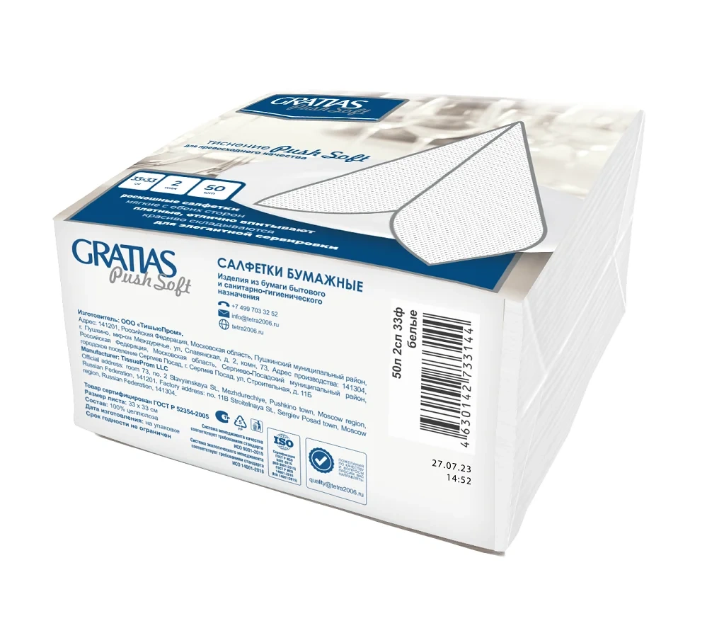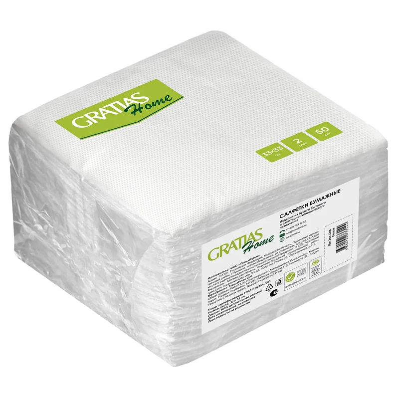 Салфетки бумажные Gratias Push Soft белые 2 слоя 33см, 50шт