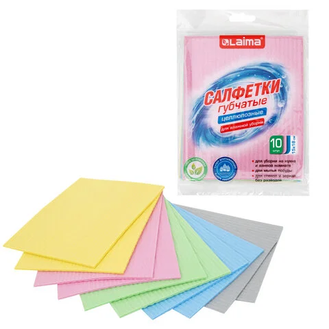 Салфетки губчатые для уборки кухни 15х18 см, ЦЕЛЛЮЛОЗНЫЕ, КОМПЛЕКТ 10 шт., цветные, LAIMA, 700269