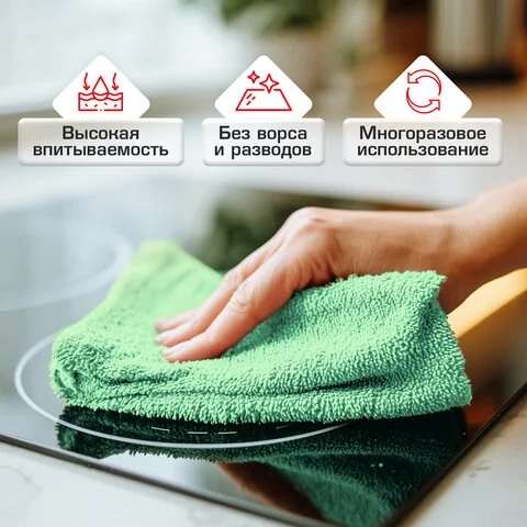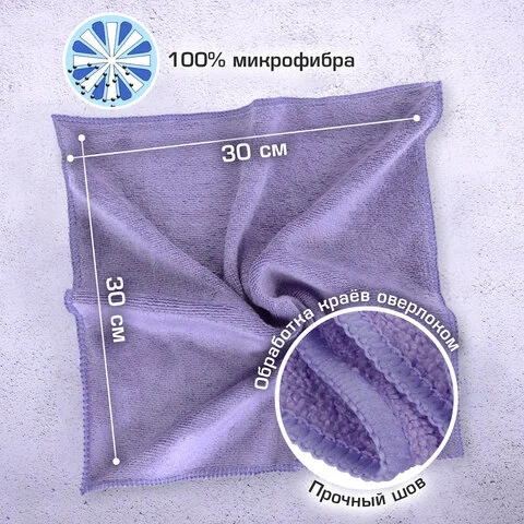 Изготовлены из микрофибры плотностью 180 г/м2. Размер – 30х30 см. Поставляются в пакете с европодвесом.