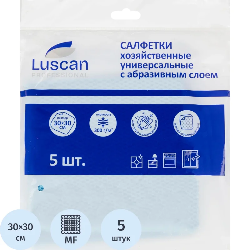 Салфетки хозяйственные Luscan Prof с абразив 300г/м2,30х30см, синяя, 5шт/уп