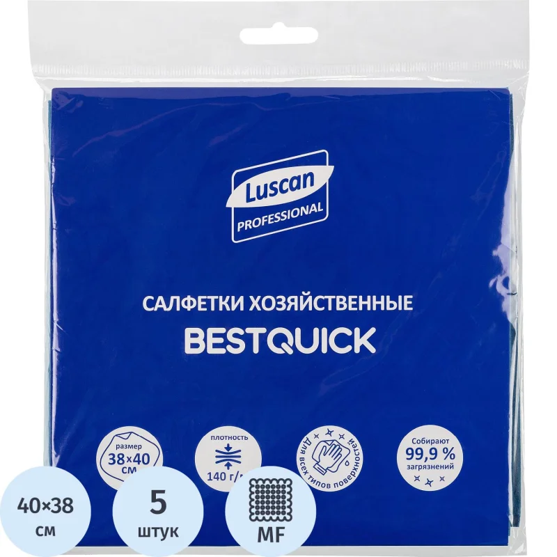 Салфетки хозяйственные Luscan Professional BESTQUICK 35х40 см голуб 5шт/уп
