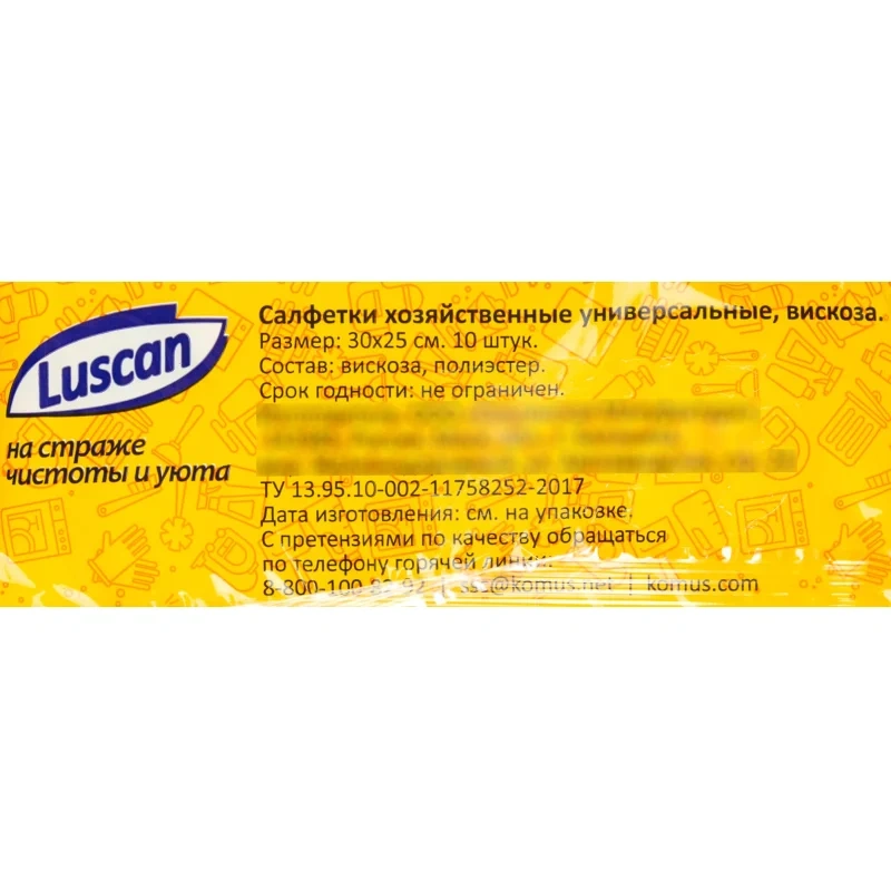 Салфетки хозяйственные Luscan универсал. вискоза 60-70г/м2 30х25 см 10шт/уп