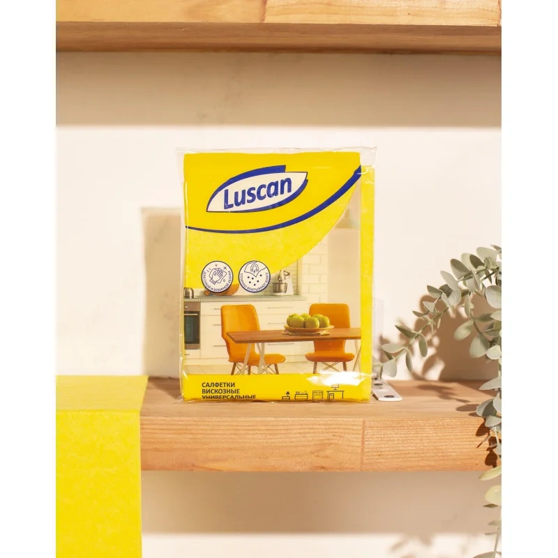 Салфетки хозяйственные Luscan вискоза 38×30 см 90 г/кв.м жёлтые (3 штуки в упаковке)