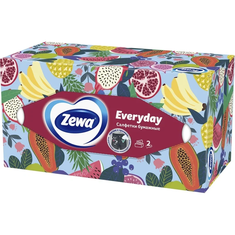 Почему стоит выбрать Zewa Everyday: нежная забота о коже: двухслойная структура делает салфетки особенно мягкими и приятными на ощупь, что особенно важно при насморке или для нежной кожи малышей.
