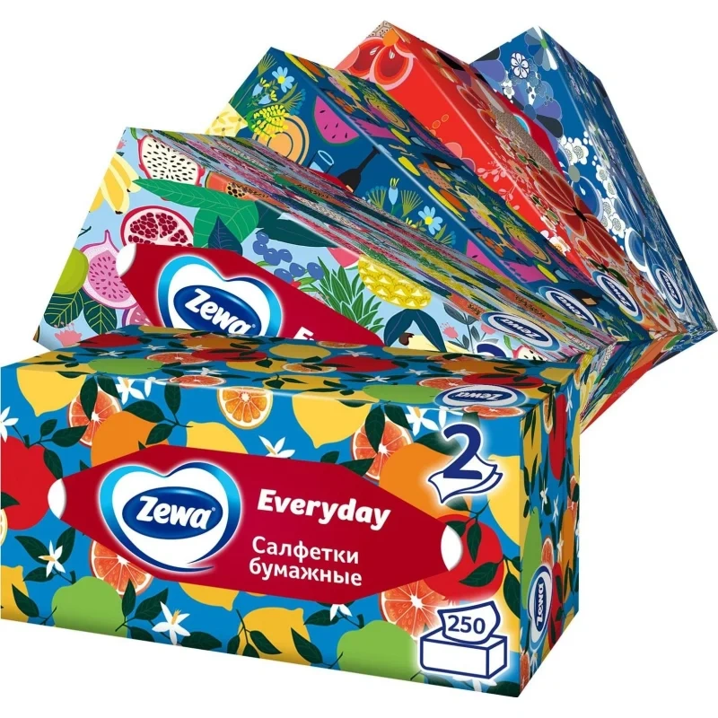 Салфетки бумажные косметические Zewa Everyday, 250 листов