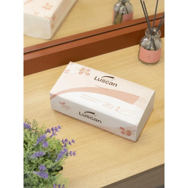 Салфетки двухслойные косметические Luscan в мягкой упаковке по 200 штук