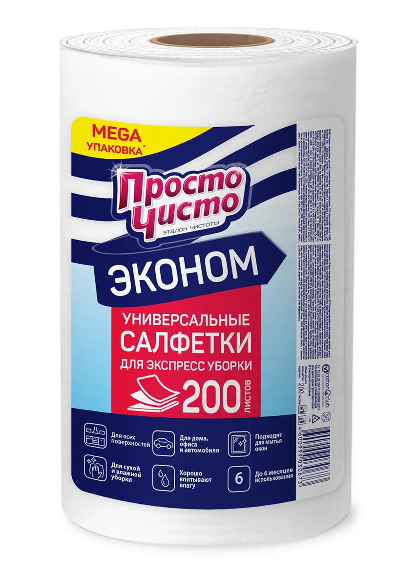 Салфетки Просто чисто в рулоне, 200шт
