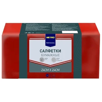 Салфетки сервировочные Metro Professional красные, 24х24см, 3 слоя, 250шт