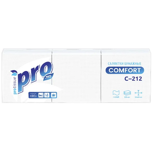 Салфетки сервировочные Protissue С212, 24х24см, белые, 1 слой, 500шт