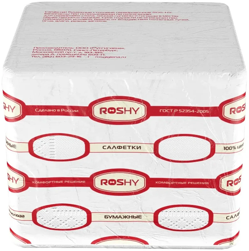 Салфетки сервировочные Roshy 33х33см, белые, 2 слоя, 200шт