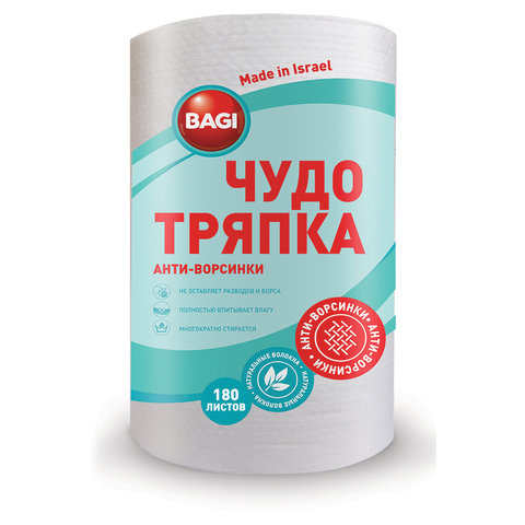 Салфетки универсальные ЧУДО ТРЯПКА 180 шт., рулон, 20х20 см, гипоаллергенные, 45 г/м2, BAGI, C-31091