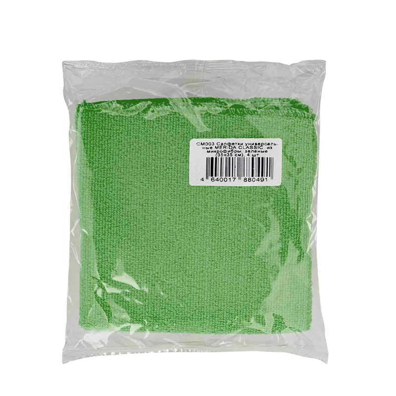 Салфетка хозяйственная Merida Classic СМ003, 35х35см, зеленая, микрофибра, 4шт/уп