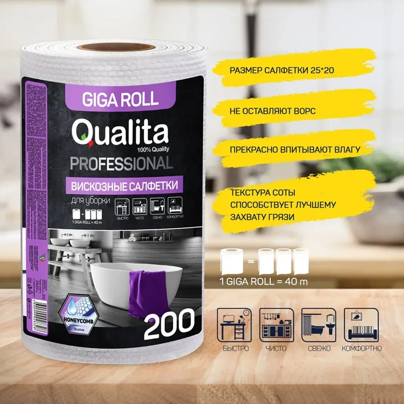 Салфетка рулонная Qualita Giga 200шт, в рулоне