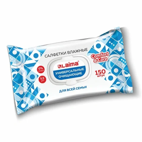 Салфетки влажные 150 шт., УНИВЕРСАЛЬНЫЕ, с пластиковым клапаном, для всей семьи, LAIMA, 115227