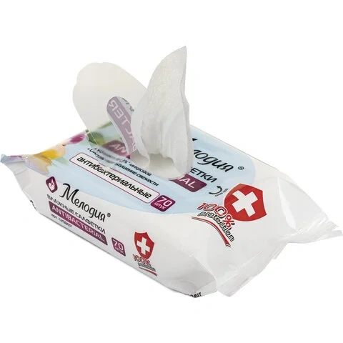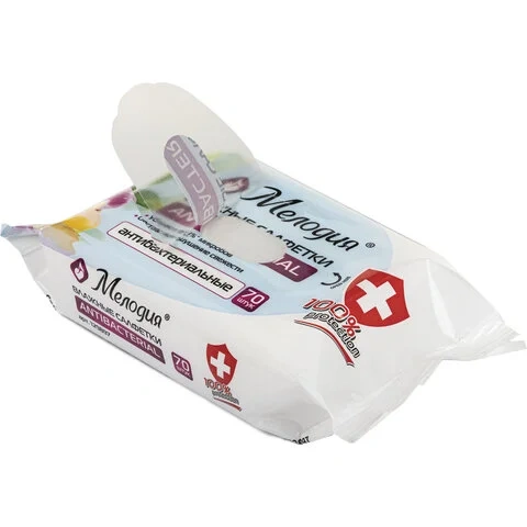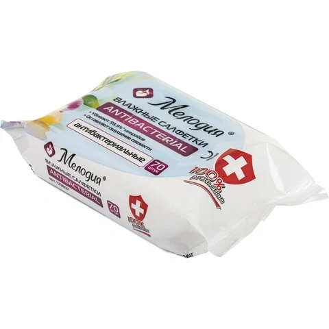Салфетки влажные 70 шт., МЕЛОДИЯ, антибактериальные, 129897