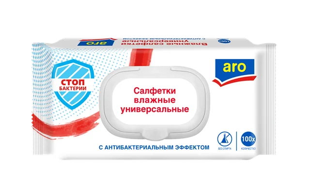 Влажные салфетки Aro Антибактериальные, 100шт/уп