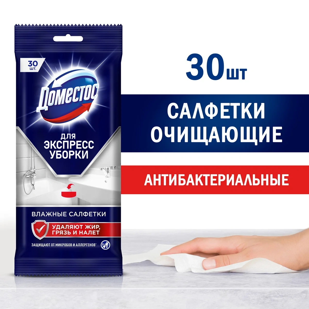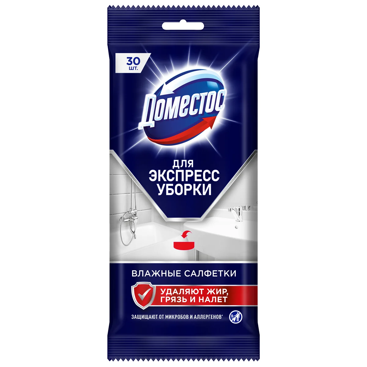 Салфетки влажные Доместос для очищения поверхностей экспресс-уборка, 30шт