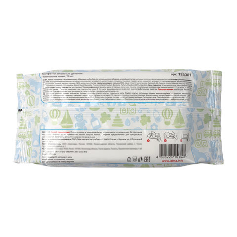 Салфетки влажные Laima Детские универсальные очищающие, 75шт
