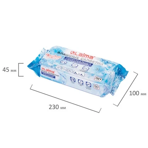 Салфетки влажные Laima универсальные очищающие/ для всей семьи, 50шт, 125960