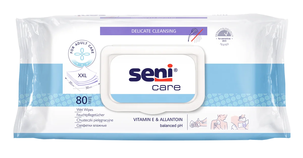 Влажные салфетки Seni Care мягкие и нежные салфетки из нетканого материала предназначены для бережного очищения чувствительной кожи и обеспечивают легкий и быстрый уход в течение дня.