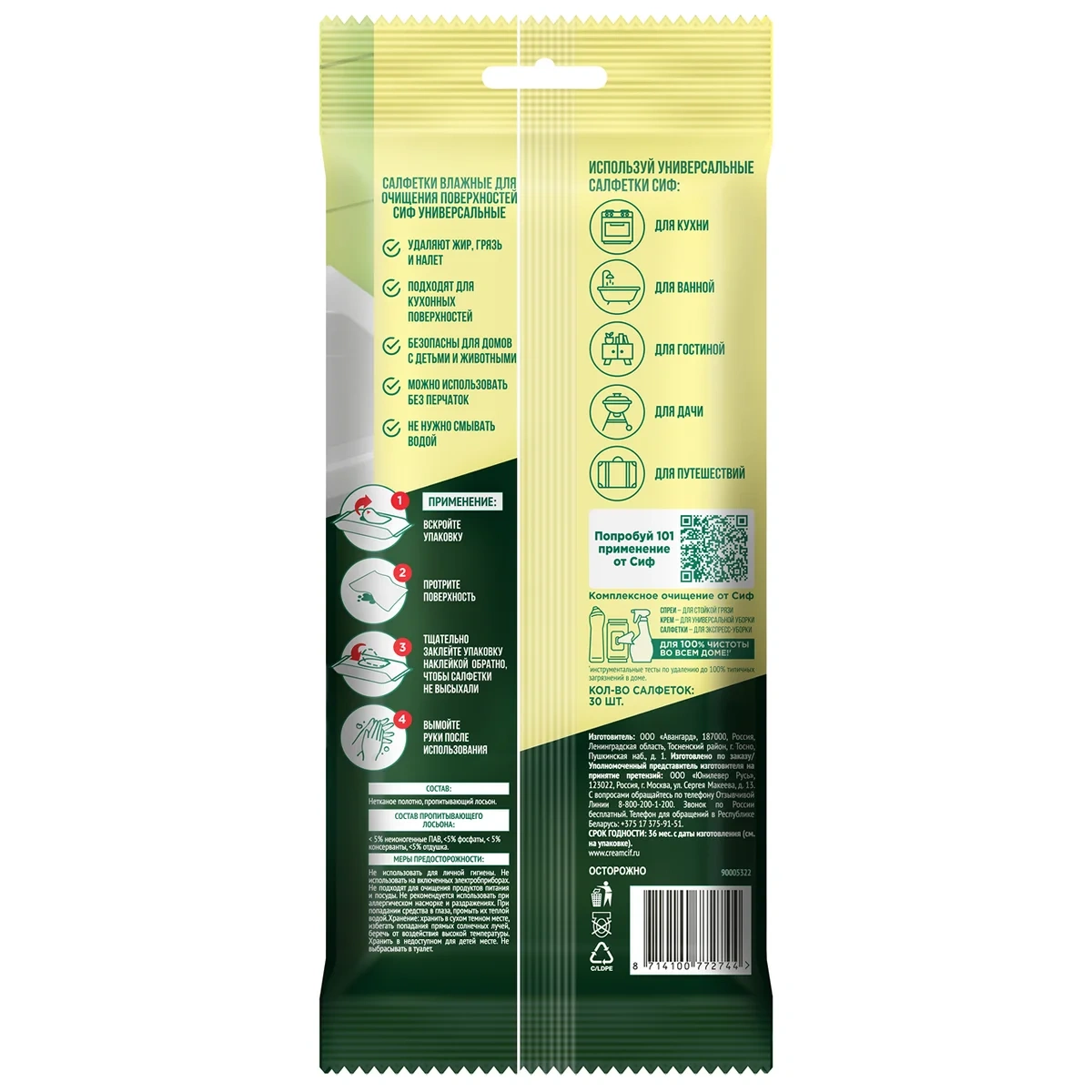 Салфетки влажные Сиф для очищения поверхностей универсальные, 30шт