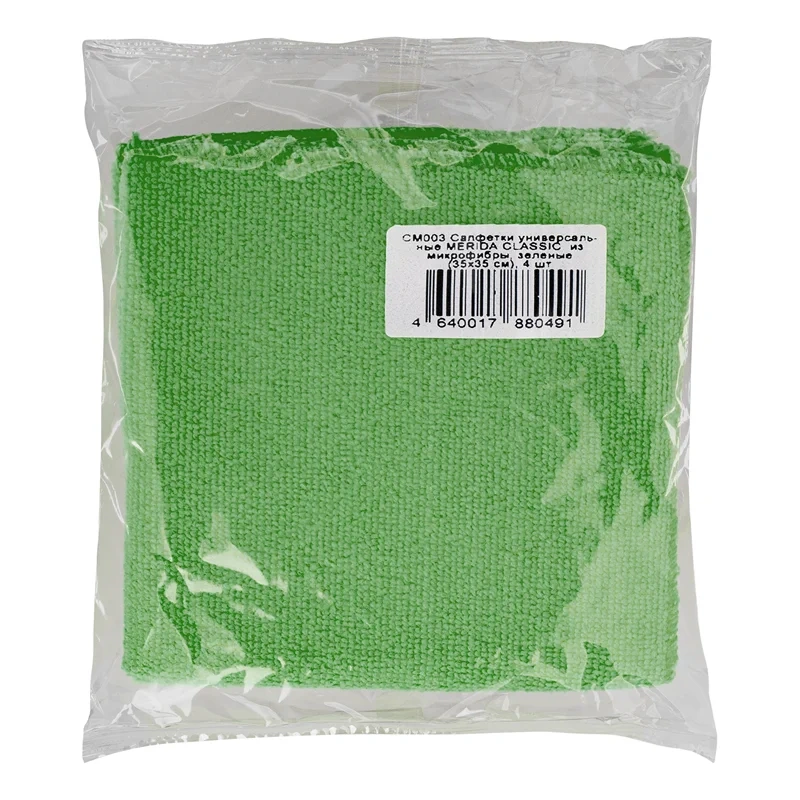 Салфетка хозяйственная Merida Classic СМ003, 35х35см, зеленая, микрофибра, 4шт/уп