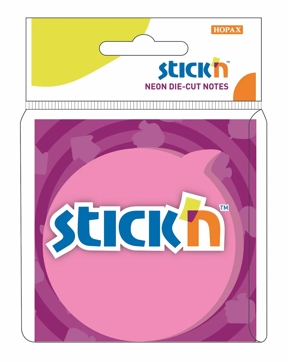 Самоклеящийся фигурный бумажный блок для записей, выполненный в ярких неоновых цветах.