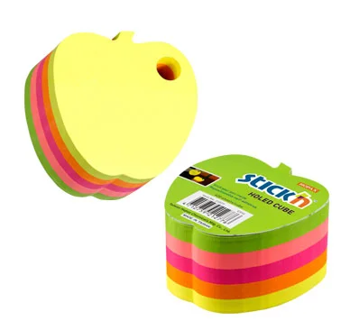 Самоклеящийся блок для записей, выполнен в неоновых цветах: зеленый, розовый, малиновый, оранжевый, желтый в виде яблока. Количество листов: 400 листов