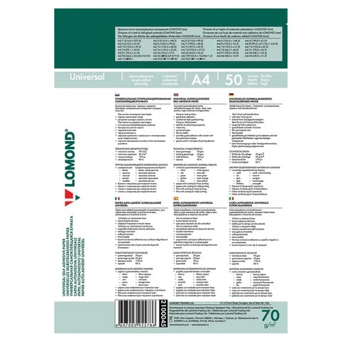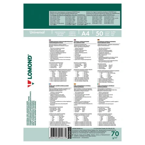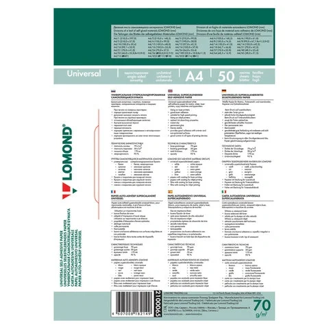 Бумага LOMOND А4 самоклеющаяся – это бумага формата А4 на клеевой основе универсального назначения. ...