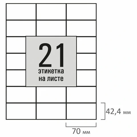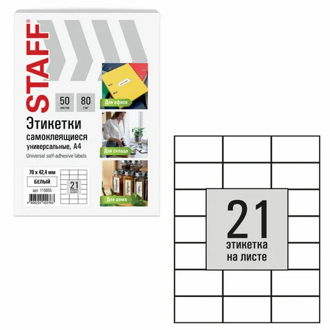 Этикетка самоклеящаяся 70х42,4мм, 21 этикетка, белая, 80г/м2, 50 листов, STAFF BASIC, 115655