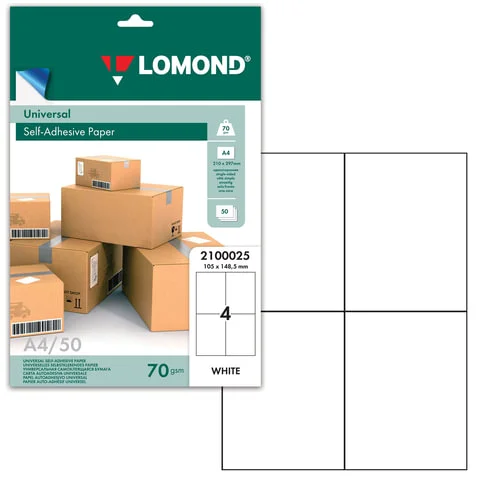 Этикетки самоклеящиеся Lomond 2100025, белые, 105х148.5мм, 200шт