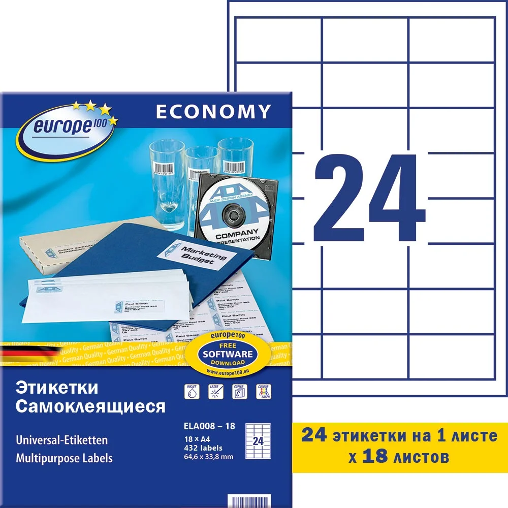 Артикул производителя ELA027-18.Универсальные самоклеящиеся этикетки Europe 100 производства Avery Z...
