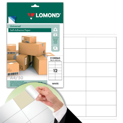 Этикетки самоклеящиеся Lomond 2100005, белые, 210х297мм, 50шт
