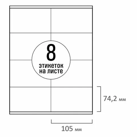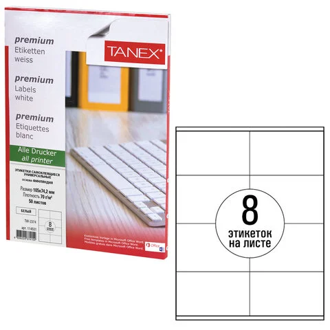 Этикетка самоклеящаяся 105х74,2 мм, 8 этикеток, белая, 70 г/м2, 50 листов, TANEX