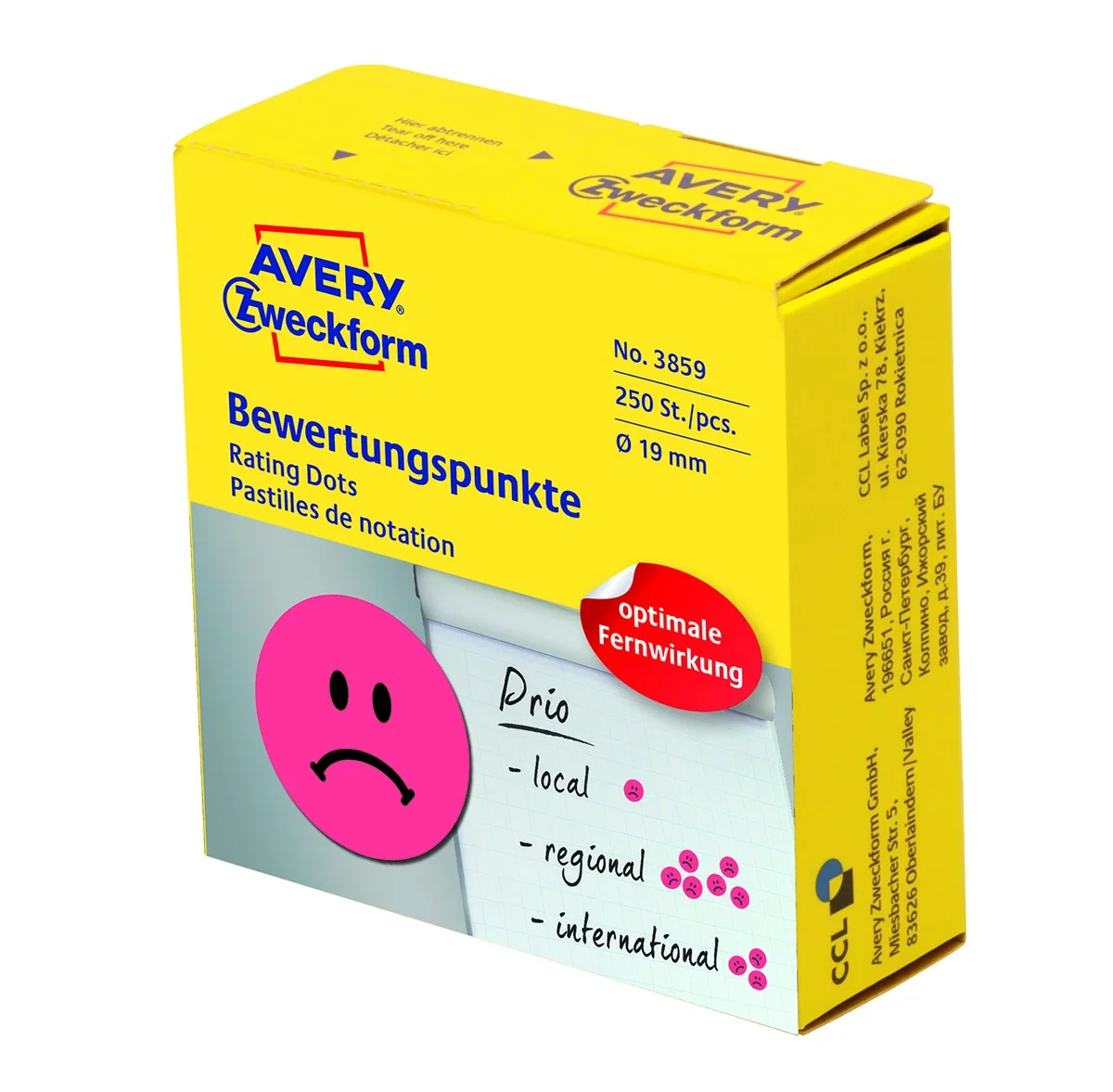 Этикетки Zweckform d-19 мм в диспенсере, красные, 'грустный смайлик'