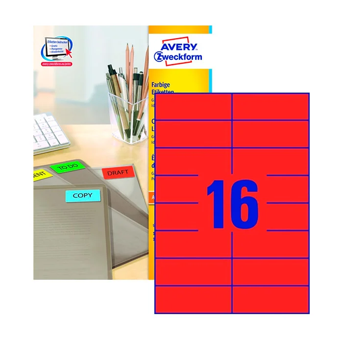 Этикетки самоклеящиеся Avery Zweckform 3452, красные, 105x37мм, 16шт на листе А4, 100 листов