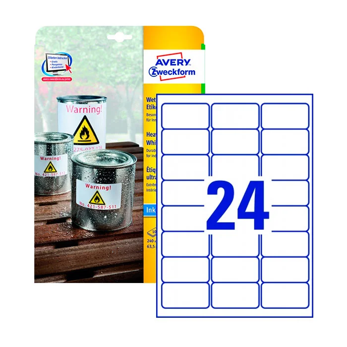 Этикетки высокостойкие Avery Zweckform L6146-20, белые, 63.5х33.9мм, 24шт на листе А4, 20 листов