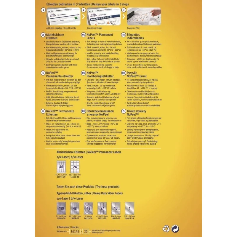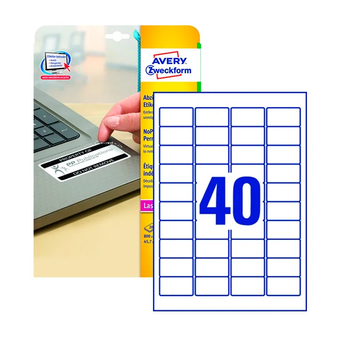 Этикетки высокостойкие Avery Zweckform L6145-20, белые, 45.7x25.4мм, 40шт на листе А4, 20 листов