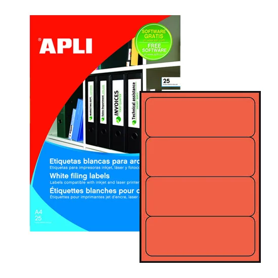 Этикетки для папок Apli 1376, 190х61мм, 80шт, красные