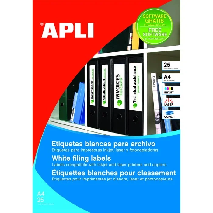 Этикетки цветные Apli 1600, 210х297мм, 20шт, голубые