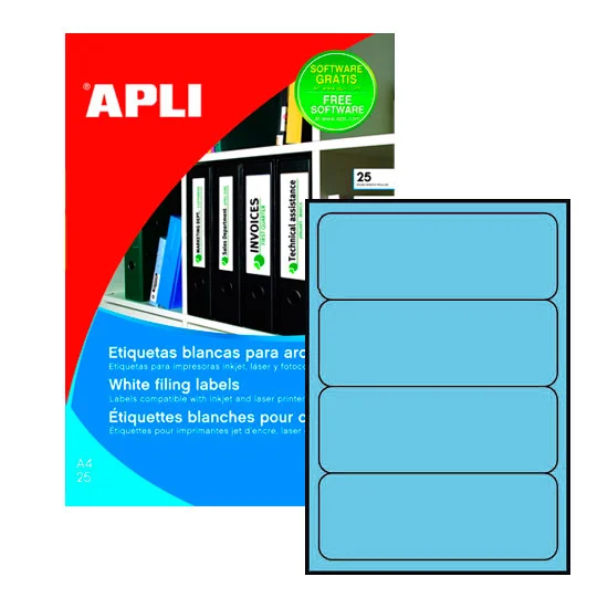 Этикетки цветные Apli 1596, 105х37мм, 320шт, голубые