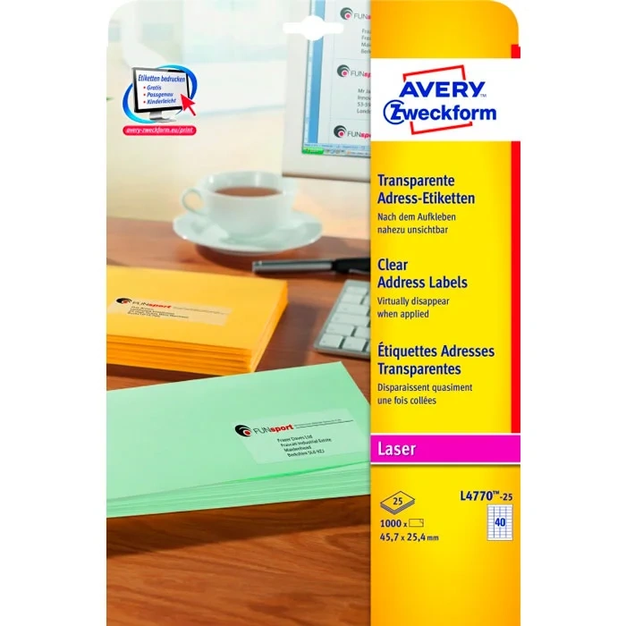Этикетки самоклеящиеся Avery Zweckform L7769-40, белые гляцевые, 99х139мм, 4шт на листе, 40 листов