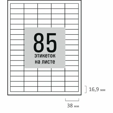 Этикетка самоклеящаяся 38х16,9мм, 85 этикеток, белая, 80г/м2, 50 листов, STAFF BASIC, 115665