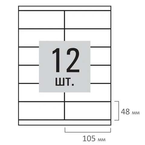Этикетка самоклеящаяся 105х48мм, 12 этикеток, белая, 80г/м2, 100 листов, STAFF BASIC, 115673