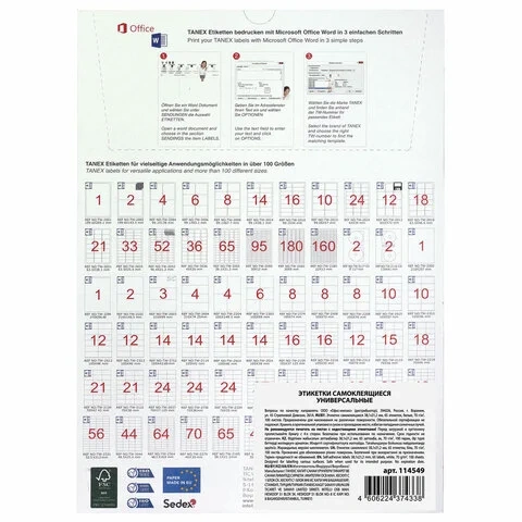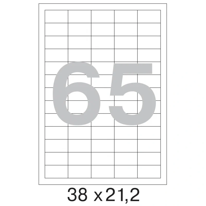 Этикетка самоклеящаяся 38,1х21,2 мм, 65 этикеток, белая, 70г/м2, 50 листов, TANEX, сырье Финляндия,
