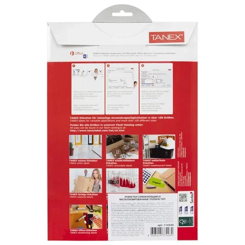 Этикетка самоклеящаяся 210х297 мм, 1 этикетка, белая, 70 г/м2, 50 листов, TANEX, сырье Финляндия, 11