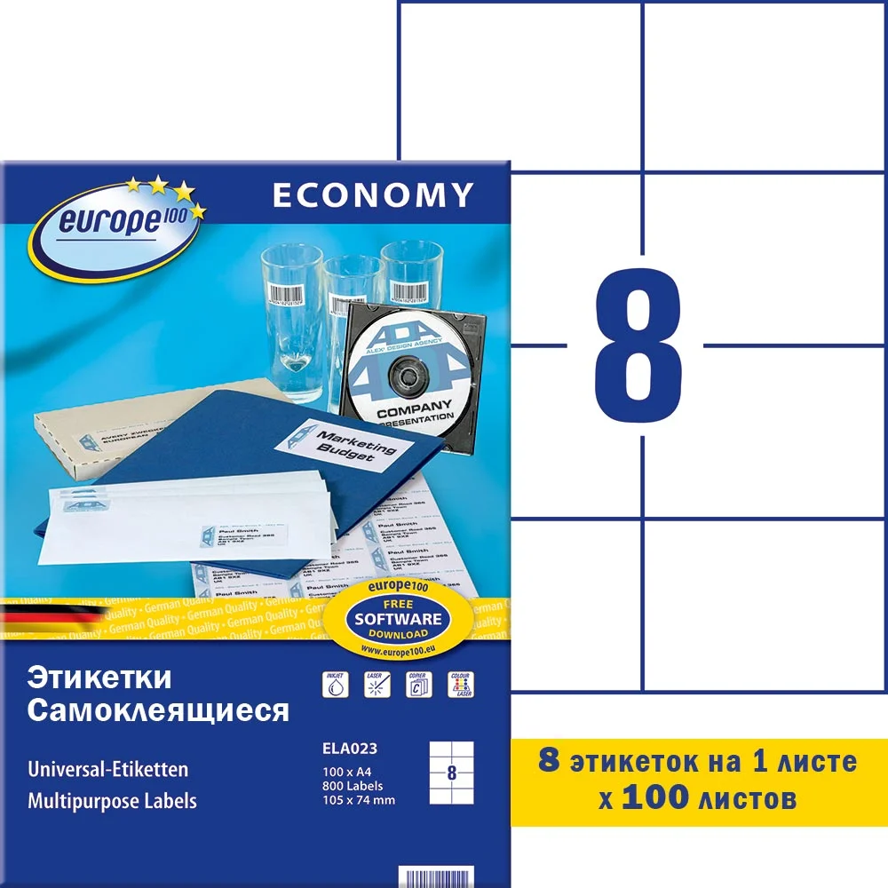 Этикетки самоклеящиеся Promega Label Basic 105х48мм, белые, 4шт на листе А4, 100 листов