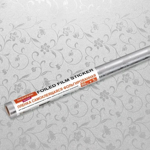 Самоклеящаяся пленка, алюминиевая фольга защитная для кухни/дома, 0,6х3 м, серебро, цветы, DASWERK,