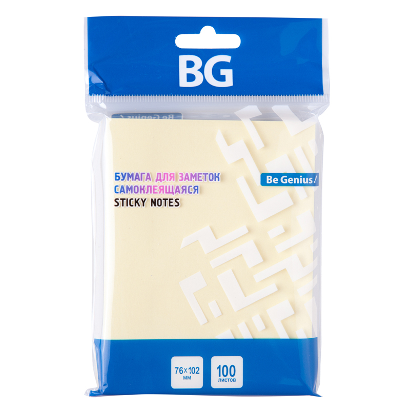 Самоклеящийся блок BG, 76*102мм, 100л, желтый пастельный, европодвес